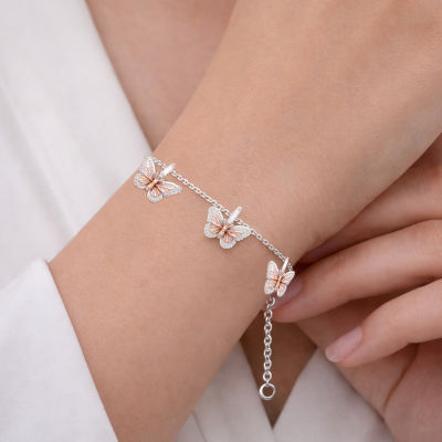 Enchanted Disney Fine Jewelry Womens 1/6 CT. T.W. Natural White Diamond 10K Rose Gold Sterling Silver Princess Mulan Charm Bracelet