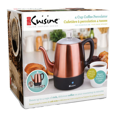 1 Reviews1 Questions & 1 Answers7806269Euro Cuisine Electric Percolator 4 cupModel #PER0412345678Add to CartProduct DetailsShipping & Returns Reviews(1)Questions & AnswersAdd To Cart