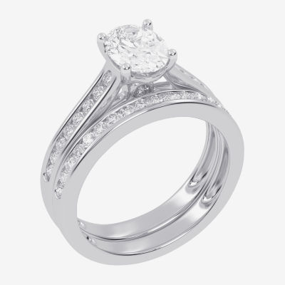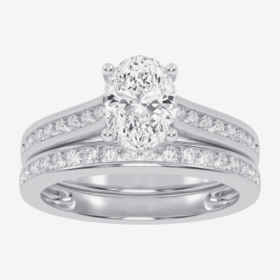 (F-G /Vs2-Si1) Womens 2 1/2 CT. T.W. Lab Grown White Diamond 10K Gold Oval Side Stone Bridal Set