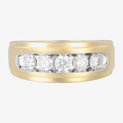 (F, Vs2) Mens 9M 1 CT. T.W. Lab Grown White Diamond 10K Gold Round 5-Stone Wedding Band