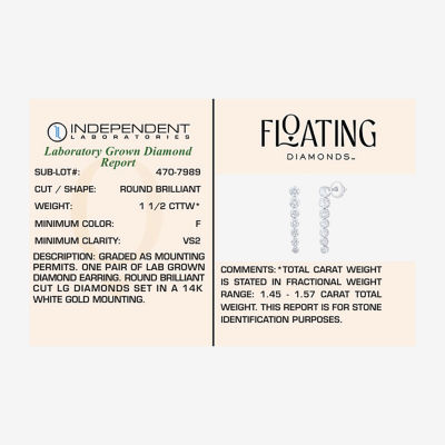 Floating Diamonds (F, Vs2) Womens 1 1/2 CT. T.W. Lab Grown White Diamond 14K White Gold Drop Earrings