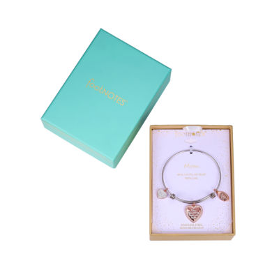 Footnotes Mom Womens Cubic Zirconia Stainless Steel Heart Bangle Bracelet