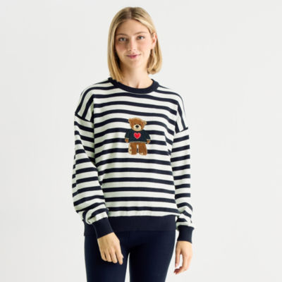 Forever 21 Juniors Womens Crew Neck Embellished Long Sleeve Striped Pullover Sweater