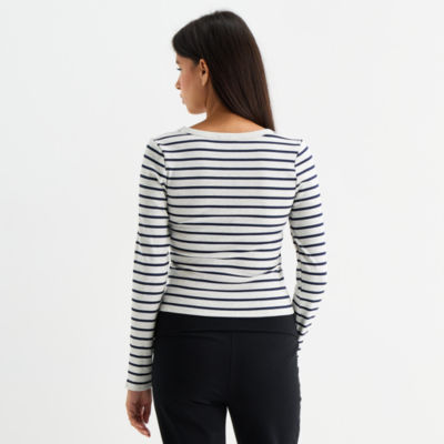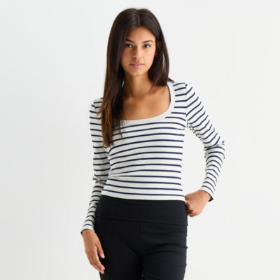 Forever 21 Womens Juniors Scoop Neck Long Sleeve Crop Top