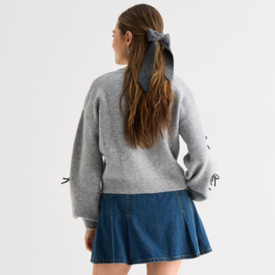 Freshman Juniors Womens Crew Neck Long Sleeve Bows Pullover Sweater