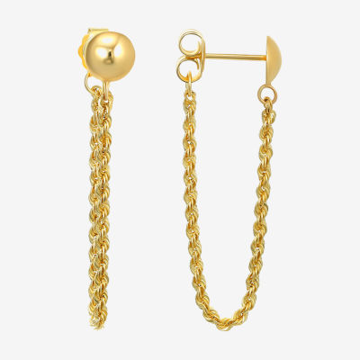 Front Back Womens 14K Gold Oval Drop Earrings
