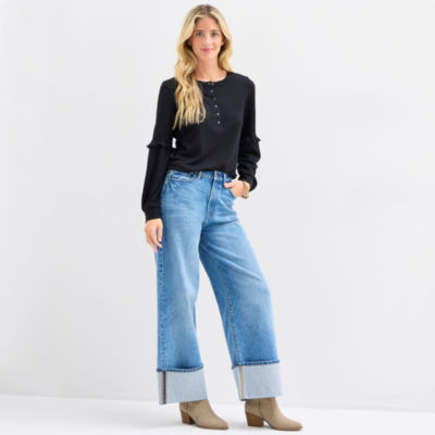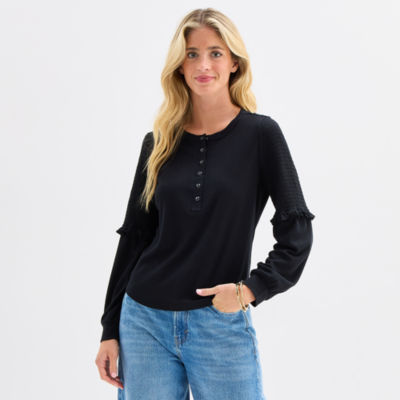 Frye and Co. Womens Split Crew Neck Long Sleeve T-Shirt