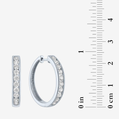 (G-H / I1-I2) Womens 1 CT. T.W. Lab Grown White Diamond Sterling Silver 23.2mm Hoop Earrings