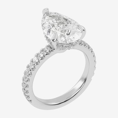 (G-H / Si1-Si2) Womens 2 1/4 CT. T.W. Lab Grown White Diamond 14K Gold Pear Side Stone Engagement Ring