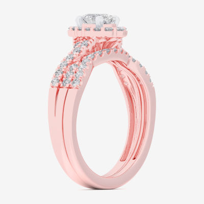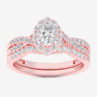 (G-H / Si1-Si2) Womens 7/8 CT. T.W. Lab Grown White Diamond 10K White Gold Oval Side Stone Halo Bridal Set