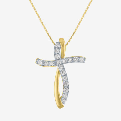 (G-H, Si2-I1) Womens 1/3 CT. T.W. Lab Grown White Diamond 10K Gold Cross 16 Inch Pendant Necklace