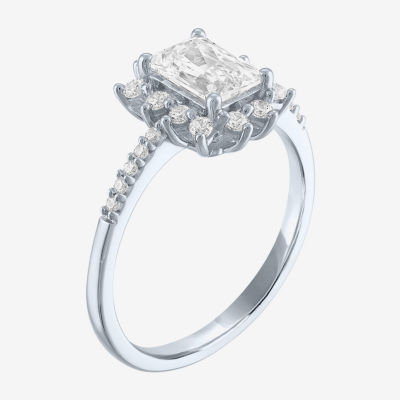 (G-H/ Si2-I1) Womens 1 CT. T.W. Lab Grown White Diamond 10K White Gold Side Stone Cocktail Ring