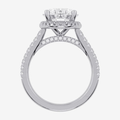 (G-H / Vs2-Si1) Womens 3 1/2 CT. T.W Lab Grown White Diamond 14K Gold Side Stone Halo Engagement Ring