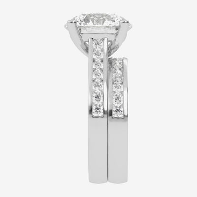 (G-H / Vs2-Si1) Womens 5 CT. T.W. Lab Grown White Diamond 14K Gold Round Side Stone Bridal Set
