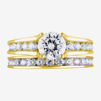 (G / Si2) Womens 2 CT. T.W. Lab Grown White Diamond 10K Gold Round Side Stone Bridal Set