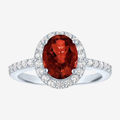 Gemstone Sterling Silver Oval Halo Side Stone Cocktail Ring