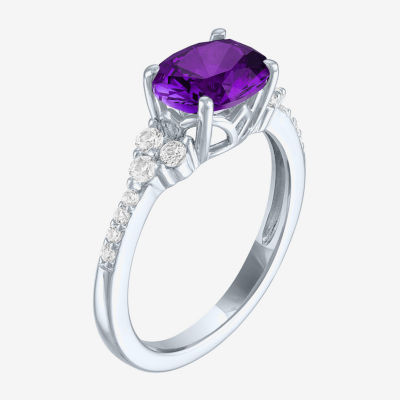 Gemstone Sterling Silver Oval Side Stone Cocktail Ring