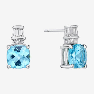 Genuine Blue Topaz and Lab-Created White Sapphire Earrings