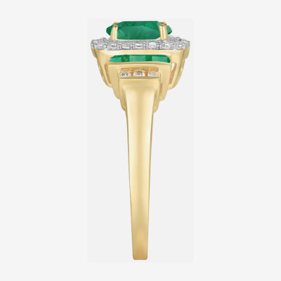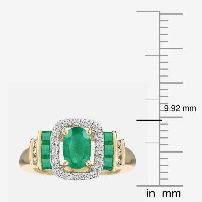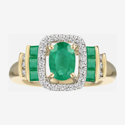 Genuine Gemstone & 1/7 CT. T.W. Diamond 10K Gold Oval Cocktail Ring