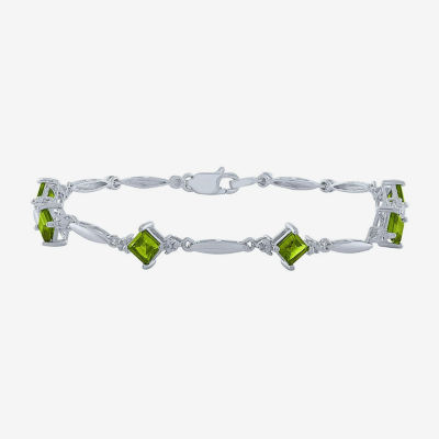 Womens Genuine Green Peridot Sterling Silver Tennis Bracelet