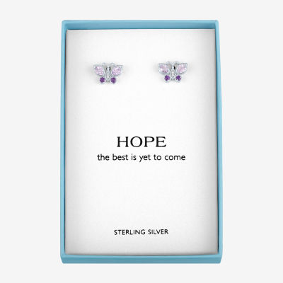 Genuine Purple Amethyst Sterling Silver 8mm Butterfly Stud Earrings
