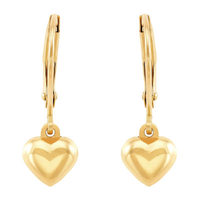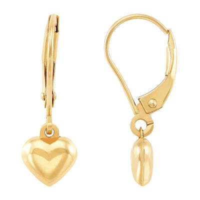 Girls 10K Gold Heart Drop Earrings
