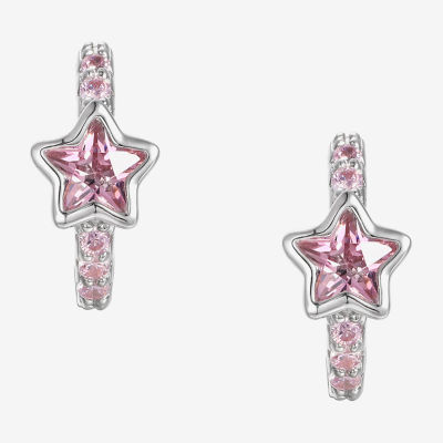 Girls 7/8 CT. Lab Created Pink Cubic Zirconia Sterling Silver 13mm Hoop Earrings