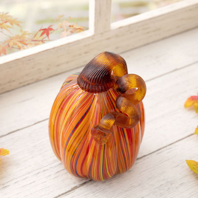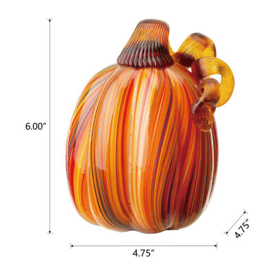 Glitzhome Multi Striped Glass Pumpkin Thanksgiving Tabletop Decor