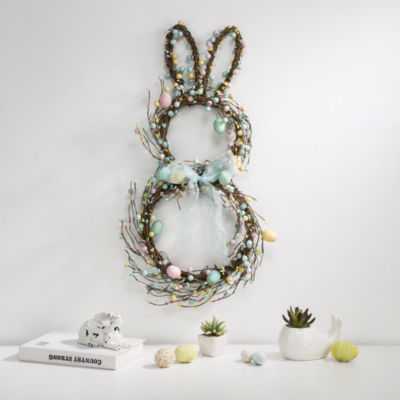 Glitzhome Nordic Frost 24.5" Easter Bunny Shaped Wreath