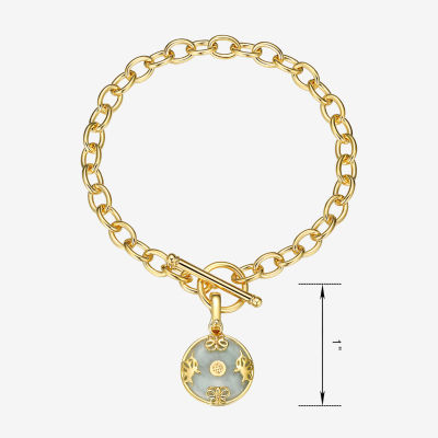 Good Fortune Womens Genuine Green Jade 18K Gold Over Silver Round Charm Bracelet
