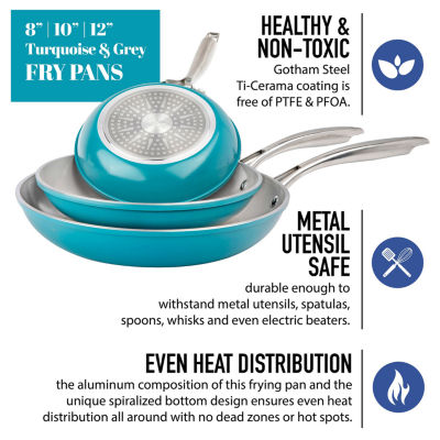 11 ReviewsAsk a Question7825068Gotham Steel 3-Pc. Nonstick With Stay Cool Handles 3-pc. Non-Stick Frying PanShop all Gotham Steel12345678Add to CartFeaturesInduction SafeOven SafeDishwasher SafeHeat Resistant HandleNon-stickMetal Utensil SafeProduct DetailsShipping & Returns Reviews(11)Questions & AnswersAdd To Cart