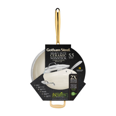 3 Reviews1 Questions & 1 Answers7826188Gotham Steel Ultra 5.5-qt. Non-Stick Jumbo Cooker Pan with Lid and Gold HandleShop all Gotham Steel12345678Add to CartFeaturesNon-stickCeramic CoatingOven SafeDishwasher SafeProduct DetailsShipping & Returns Reviews(3)Questions & AnswersAdd To Cart