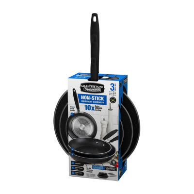 25 Reviews3 Questions & 1 Answers7824892ColorproductGranitestone 3-pc. Nonstick Fry Pan Set With Rubber Grip HandlesShop all Granitestone12345678Add to CartFeaturesInduction SafeDishwasher SafeNon-stickMetal Utensil SafeHeat Resistant HandleProduct DetailsShipping & Returns Reviews(25)Questions & AnswersAdd To Cart
