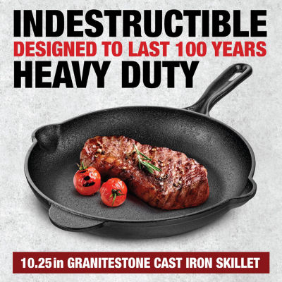 10 Reviews2 Questions & 0 Answers7825515Granitestone Heavy Duty Cast Iron 10.25" Round SkilletShop all Granitestone12345678Add to CartFeaturesInduction SafeMetal Utensil SafeOven SafeProduct DetailsShipping & Returns Reviews(10)Questions & AnswersAdd To Cart