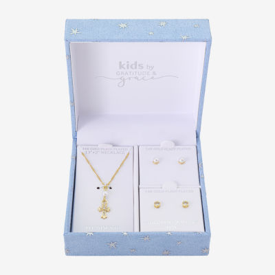 Gratitude & Grace Girls Cubic Zirconia 14K Gold Over Brass Cross 3-pc. Jewelry Set