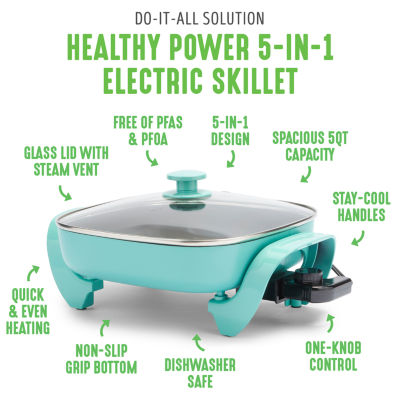 11 Reviews2 Questions & 2 Answers7806141ColorGreenLife 12" 5QT Square Electric Skillet, Glass Vented Lid, Ceramic PFAS-Free Nonstick Coated Interior, Adjustable Temperature Control, Cool Touch Handles, Quick Even Heating, Scratch ResistantModel #CC003725-00112345678Add to CartProduct DetailsShipping & Returns Reviews(11)Questions & AnswersAdd To Cart