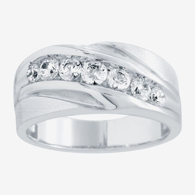 (H-I / I1) Mens 5MM 1 CT. T.W. Lab Grown White Diamond 10K White Gold Wedding Band
