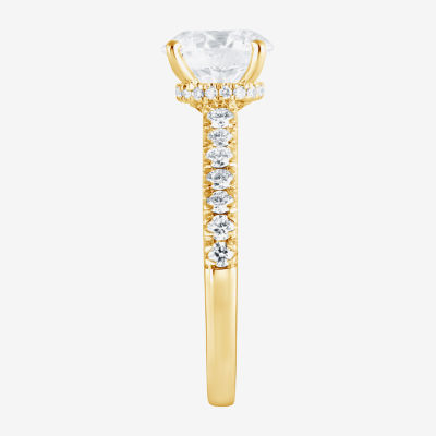 (H-I, Vs1-Vs2) Womens 2 CT. T.W. Lab Grown White Diamond 14K Gold Round Side Stone Engagement Ring