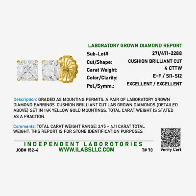 Write a ReviewAsk a Question2712287ColorStone Cut( E-F/Si1-Si2 ) 4 CT. T.W. Lab-Grown White Diamond 14K Gold 7mm Cushion Stud Earrings12345678Add to CartProduct DetailsShipping & Returns Shop The LookReviewsQuestions & AnswersAdd To Cart