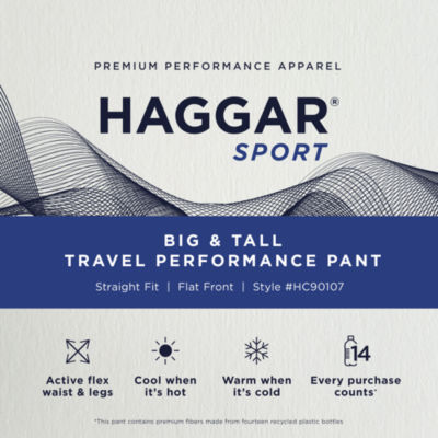 new!Haggar Sport Travel Performance Mens Straight Fit Big and Tall Flat Front Pant