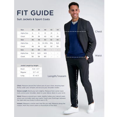 41 Reviews3 Questions & 3 Answers5530727ColorchestSize ChartlengthHaggar Travel Performance Tailored Mens Stretch Fabric Modern Fit Suit Jacket12345678Add to CartFeaturesStretch FabricDry Clean OnlyProduct DetailsSize ChartShipping & Returns Haggar Suit Separates & Sport Coats Size GuideShop The LookReviews(41)Questions & AnswersAdd To Cart