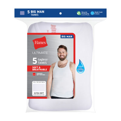 46 ReviewsAsk a Question5041017Colorsize rangesizeSize ChartHanes Mens Crew Neck Sleeveless 5 Pack Big TankShop all Hanes12345678Add to CartFeaturesCoolingMoisture WickingTag FreeBreathable100% CottonMachine WashProduct DetailsSize ChartShipping & Returns Hanes Men's Big Undershirt Size GuideShop The LookReviews(46)Questions & AnswersAdd To Cart