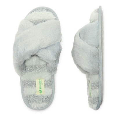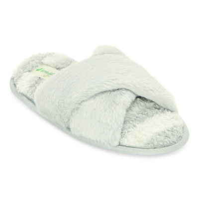 HONEYDEW Mixed Media Crossband Womens Memory Foam Slip-On Slippers