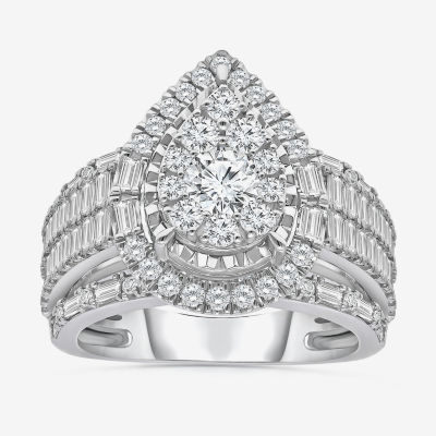 (I / I1) Womens 2 CT. T.W. Lab Grown White Diamond 10K White Gold Pear Side Stone Halo Engagement Ring