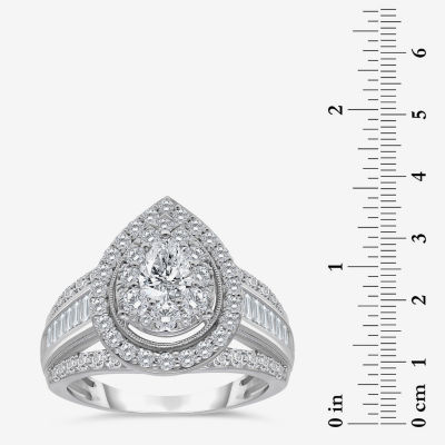 (I / I1) Womens 2 CT. T.W. Lab Grown White Diamond 10K White Gold Pear Side Stone Halo Engagement Ring