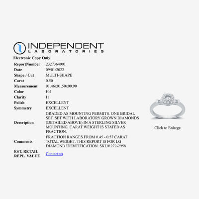 Write a ReviewAsk a Question2724636ColorsizeI Said Yes (H-I / I1) Womens 1/2 CT. T.W. Lab Grown White Diamond Sterling Silver or 14K Gold Over Silver Cushion Side Stone Halo Engagement Ring12345678Add to CartProduct DetailsShipping & Returns Shop The LookReviewsQuestions & AnswersAdd To Cart