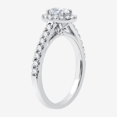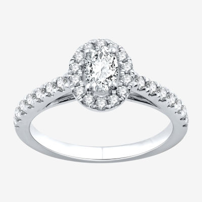 I Said Yes (H-I / I1) Womens 1 CT. T.W. Lab Grown White Diamond Sterling Silver Oval Side Stone Halo Engagement Ring