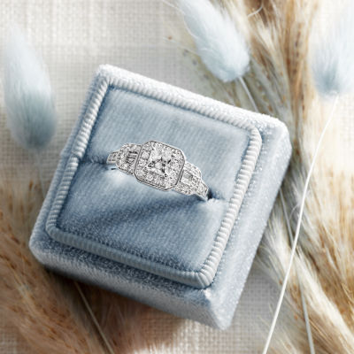 I Said Yes (H-I / I1) Womens 3/4 CT. T.W. Lab Grown White Diamond Sterling Silver Side Stone Halo Engagement Ring