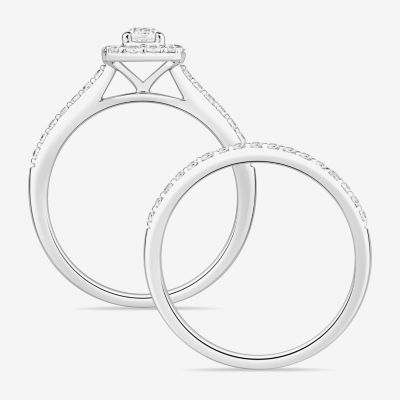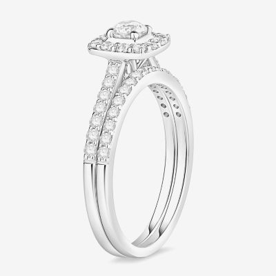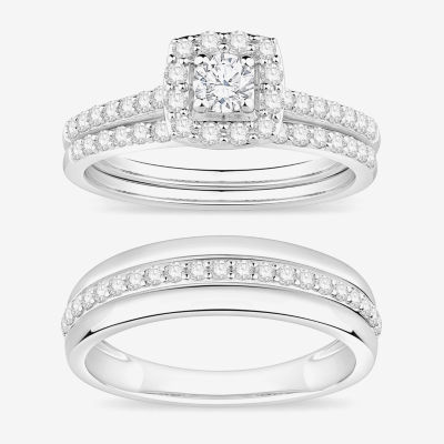 (I / Si1) 3PC Trio Set Featuring 1 CT. T.W. Lab Grown White Diamond 10K White Gold Round Side Stone Wedding Bridal Set
