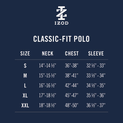 94 ReviewsAsk a Question5633221ColorsizeSize ChartIZOD Advantage Performance Mens Classic Fit Short Sleeve Polo ShirtShop all Izod12345678Add to CartFeaturesEasy CareMachine WashProduct DetailsSize ChartShipping & Returns IZOD Men's Tops Size GuideShop The LookReviews(94)Questions & AnswersAdd To Cart